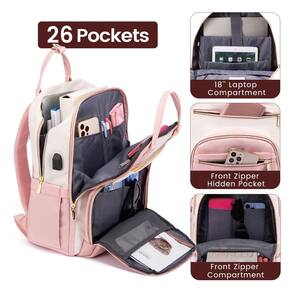 LOVEVOOK Mochila para mulheres, mochila para laptop feminina, serve para laptop de 45 cm, bolsa antifurto de viagem, trabalho, à prova d'água, para negócios, faculdade, professor, mochila, mochila, bege, rosa, rosa - ?Grande capacidade?Uma mochila para resolver todos os problemas de viagem. A mochila para laptop de grande capacidade tem 6 compartimentos e mais de 26 bolsos, que podem organizar seus itens de viagem de maneira ordenada, fácil de guardar laptop, ipads, telefone, fichário, garrafa de água e assim por diante. Tamanho: 37 cm C x 40 cm A x 20 cm P e pesa 1 kg. - ?Proteção para laptop?A mochila com compartimento para laptop tem um bolso separado dedicado para laptop de 18,4 polegadas e um compartimento para iPad de 9,7 polegadas. Os bolsos são costurados com um material de amortecimento que maximiza a proteção física do seu laptop. - ?Design de porta USB?Ótimo design tecnológico. Você pode conectar facilmente seu telefone à porta USB, oferecendo uma maneira mais conveniente de carregar seu telefone enquanto caminha. (Power bank não está incluído) - ?Design confortável e antirroubo?Design de alça de ombro de malha com fluxo de ar, comprimento ergonômico da alça de ombro. Alças duplas reforçadas com rebite, e a mochila é reforçada e costurada em todos os pontos de tensão para durabilidade absoluta. Um bolso antirroubo na parte traseira. É seguro para proteger seus itens valiosos dentro. Não precisa se preocupar com itens roubados. - ?Design de alça de bagagem?Mochila para viajar de avião. Projetada para caminhadas, ajuda você a liberar suas mãos e costas do peso. Torne sua viagem mais conveniente e agradável. Necessidades de trabalho, suprimentos universitários e itens essenciais de viagem. - ?Mochila multiuso e garantia de qualidade?Esta mochila é perfeita para universidade, trabalho, viagens, negócios, uso diário e atividades ao ar livre. Pode ser usada como mochila universitária, mochila de enfermeira, mochila de trabalho e negócios. A mochila feminina LOVEVOOK para laptop oferece atendimento ao cliente em 12 horas, devolução sem motivo em 30 dias e política de garantia de 1 ano.