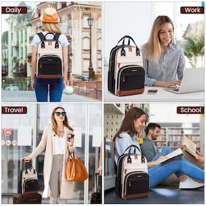 A mochila feminina LOVEVOOK para laptop visa o equilíbrio entre vida pessoal e profissional. Seja você uma nômade digital ou uma mulher de negócios profissional, exceto no trabalho, não se esqueça de se exercitar e comer de forma saudável para manter a forma. A aparência desta mochila feminina é limpa e elegante, permitindo que as mulheres a usem em todas as ocasiões, como trabalho, viagens ou exercícios. É prática para o uso diário. Especificação: Tamanho: 33 cm C 48 cm A 19 cm A. Peso: 1 kg; Material principal: nylon resistente à água. Quais espaços de armazenamento esta mochila de viagem tem? Compartimento separado para laptop: comporta laptop de até 17,3 polegadas. Compartimento para tablet dedicado para iPad de até 12,9 polegadas. Mais 3 bolsos para armazenar mouse, adaptador, cabo de carregamento e outros eletrônicos. Vem com espuma EVA acolchoada e trava antirroubo oferecem a proteção ideal para seus dispositivos. Compartimento principal com 2 bolsos de armazenamento: pode guardar pastas A4, revistas, livros, roupas, etc. 2 compartimentos frontais com muitos bolsos: para chaves, fones de ouvido, canetas e outros acessórios diários. Bolso traseiro: para guardar celular, carteira, passaporte ou outras coisas importantes. 2 bolsos laterais: pode guardar uma garrafa de água grande ou guarda-chuva. Por que nossa mochila é confortável de usar? Painel traseiro acolchoado e alças de ombro adicionam conforto. Alça traseira para bagagem para facilitar o transporte. A porta de carregamento USB pode carregar o dispositivo facilmente em movimento. Mochila traseira, seu presente prático e presente para sua família, amigos que vão viajar ou trabalhar. Esta mochila grande para computador é adequada para deslocamentos, viagens de trabalho ou viagens de negócios. - ?Grande capacidade?Uma mochila para resolver todos os problemas de viagem. A mochila para laptop de grande capacidade tem 6 compartimentos e mais de 26 bolsos, que podem organizar seus itens de viagem de maneira ordenada, fácil de guardar laptop, ipads, telefone, fichário, garrafa de água, guarda-chuva, leitores, revistas, roupas, canetas, carteira e assim por diante. Tamanho: 33 cm C 48 cm A 19 cm P. Peso: 1 kg. - ?Proteção para laptop?A mochila com compartimento para laptop tem um bolso separado dedicado para laptop de 17,3 polegadas e um compartimento para iPad de 9,7 polegadas. Os bolsos são costurados com um material de amortecimento que maximiza a proteção física do seu laptop. - ?Design de porta USB?Ótimo design tecnológico. Você pode conectar facilmente seu telefone à porta USB, oferecendo uma maneira mais conveniente de carregar seu telefone enquanto caminha. (Power bank não está incluído) - ?Design confortável e antirroubo?Design de alça de ombro de malha com fluxo de ar, comprimento ergonômico da alça de ombro. Alças duplas reforçadas com rebite, e a mochila é reforçada e costurada em todos os pontos de tensão para durabilidade absoluta. Um bolso antirroubo na parte traseira. É seguro para proteger seus itens valiosos dentro. Não precisa se preocupar com itens roubados. - ?Design de alça de bagagem?Mochila para viajar de avião. Projetada para caminhadas, ajuda você a liberar suas mãos e costas do peso. Torne sua viagem mais conveniente e agradável. Necessidades de trabalho, suprimentos universitários e itens essenciais de viagem. - ?Mochila multiuso e garantia de qualidade?Esta mochila é perfeita para universidade, trabalho, viagens, negócios, uso diário e atividades ao ar livre. Pode ser usada como mochila universitária, mochila de enfermeira, mochila de trabalho e negócios. A mochila feminina LOVEVOOK para laptop oferece atendimento ao cliente em 12 horas, devolução sem motivo em 30 dias e política de garantia de 1 ano.