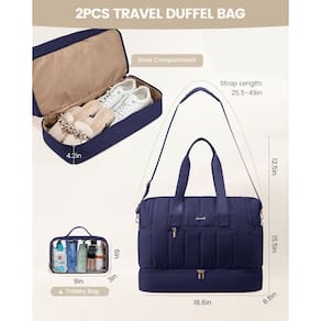 Bolsa de viagem acolchoada - Macia e leve: a bolsa esportiva de viagem LOVEVOOK é feita de Taslon macio, grosso e durável, proporcionando uma experiência de transporte confortável. Zíperes resistentes e costura garantem durabilidade duradoura. As bolsas esportivas combinam estilo e função. Expresse com confiança seu senso de estilo único enquanto carrega todos os seus itens essenciais com facilidade. Caminhe na linha entre moda e funcionalidade. - Dimensões da bolsa de mão de avião: a bolsa de viagem feminina LOVEVOOK atende à maioria dos requisitos internacionais de bagagem de mão. Pode ser guardada no compartimento superior e sob o assento como um item pessoal durante o voo. A capa de carrinho integrada desliza sobre a alça da bagagem. Há um bolso com zíper na parte traseira para o seu smartphone, identidade ou passaporte. A bolsa de embarque ideal para o fim de semana para viagens de negócios ou pessoais. - Bolsa feminina estilosa de fim de semana e pernoite: esta bolsa esportiva grande pode armazenar itens essenciais diários por 3 a 7 dias. Vários bolsos para manter seus pertences pessoais organizados. Na frente da bolsa esportiva de viagem, há um bolso para fácil acesso a eletrônicos ou materiais de viagem. A bolsa de viagem de algodão de pelúcia atende às maiores necessidades e fantasias da mulher urbana moderna para bolsas de viagem. - Bolsa de ginástica com separação úmida e seca e armário de sapatos independente: a bolsa interna de separação úmida e seca é feita de material impermeável de alta densidade, que pode ajudá-lo a separar itens úmidos e secos. Esta bolsa esportiva feminina de academia tem um compartimento inferior separado para sapatos e outros itens. Também pode ser usada como bolsa hospitalar. - Versátil para todas as aventuras: se você estiver indo para a academia, embarcando em viagens de avião e viagens de trailer, ou procurando uma bolsa hospitalar chique para parto feminino, esta bolsa esportiva se adapta a todos os aspectos do seu estilo de vida ativo.