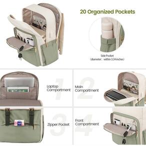 LOVEVOOK Mochila feminina para laptop, viagem, computador, 43 cm, mochila de mão para professores, trabalho, negócios, faculdade, Celadon e bege, Personalizada - ?Grande capacidade e 20 bolsos organizados?: com compartimento principal e vários bolsos, esta mochila feminina facilita manter sua carteira, chaves, fones de ouvido, documentos (A4) e itens essenciais do dia a dia organizados. Garrafa de água (diâmetro: 8,5 cm) pode caber no bolso lateral. - ?Design exclusivo e prático?: esta mochila de alta qualidade é feita com uma fivela dupla exclusiva e design de vários bolsos, adicionando um toque moderno à sua praticidade. Feita de tecido premium, esta mochila para laptop é o acessório perfeito para ocasiões como viagens, trabalho, negócios, faculdade e assim por diante. - ?Alça e tamanho para viagem ?: a alça de bagagem permite que esta mochila de viagem se prenda à bagagem/malas, tornando sua viagem mais conveniente. Dimensões: 30 cm C x 17 cm L x 43 cm (AERLINA APROVADA) - ?Material de alta qualidade e design versátil?: Feita de poliéster premium, esta mochila para computador é a mistura ideal de estilo e utilidade. Se você precisa de uma mochila, mochila de trabalho, bolsa de enfermeira, mochila de professor ou mochila de viagem, esta bolsa tem o que você precisa. - ?Atendimento ao cliente eficaz?: A LOVEVOOK está comprometida em fornecer aos nossos clientes bolsas e serviços de alta qualidade. Oferecemos atendimento ao cliente 12 horas. Se você tiver algum problema com nossas bolsas, e faremos o nosso melhor para consertar as coisas.
