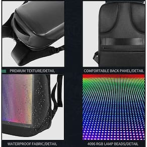 Mochila LED para laptop: A mochila LED é feita de tecido Oxford à prova d'água com tela de matriz de pontos colorida 64 x 64 integrada. É uma mochila com tecnologia de exibição programável para viagens, publicidade, desejos de férias, viagens, trabalho, caminhadas ou até mesmo um. Presente surpresa para amigos e familiares. Como usar: Antes de usar a mochila com display LED, é necessário preparar Power Bank de 10.000 mAh. Baixe o aplicativo ledspace na app store, a porta USB integrada dentro da mochila se conecta à energia móvel. Ligue o seu celular. O dispositivo Bluetooth está conectado corretamente e abra o aplicativo. Você pode adicionar legendas, animações GIF e imagens e exibi-las na tela de LED. A energia móvel de 10.000 mAh pode alimentar a mochila por 6 horas Graffiti de texto colorido: No aplicativo, você pode inserir texto ou fazer upload de seus padrões favoritos e imagens GIF dinâmicas para criar seu próprio estilo de graffiti DIY. Com esta mochila misteriosa você atrairá mais atenção da multidão. Mochila para laptop de alta qualidade: mochila para laptop de 15,5 polegadas, à prova d'água, de alta capacidade, pode atender às necessidades de trabalho e estudo diários. Marca: A Ean: 7898758492696