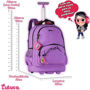 Mochila Luluca Rodinhas Escolar Juvenil Mala Viagem Meninas - Clio Style A mochila Luluca de Rodinhas é perfeita para transformar a rotina escolar em uma aventura cheia de cor e imaginação. Com design encantador, espaço de sobra e detalhes mágicos, ela une praticidade e fantasia em um só produto. Mais do que carregar materiais, essa mochila leva sonhos e sorrisos e faz cada dia começar com brilho nos olhos. Características Mochila: - Alça Retrátil para Transporte - Descanso Frontal em PU - Detalhes Customizados em Metal Vintage - Porta Fones de Ouvido Customizado Luluca - Bolsos Laterais para Garrafas - Bolsos Frontais Utilitários - Confecção em Poliéster Texturizado - Zíper com Puxadores Personalizados - Estrutura do Carrinho em Alumínio - Pega de Transporte Manual em Cordinha - Detalhes da Luluca Shine Coloridos - Porta Fones de Ouvido Personalizado Especificações Mochila: - Marca: Clio Style - Material: Poliéster - Medidas Aprox. axlxp : 48cm x 35cm x 19cm - Tema: Luluca Shine - Keep Glowing - Cor: Lilás - Capacidade Aprox. litros : 32 litros - Estilo do tecido: Poliéster Texturizado com detalhes coloridos Conteúdo da Embalagem: - LU27029 - 1x Mochila Luluca Rodinhas Escolar Juvenil Mala Viagem Meninas - Clio Style As cores podem variar entre as imagens mostradas acima e o produto. Imagens meramente ilustrativas. Todas as informações divulgadas são de responsabilidade exclusiva do fabricante. de 90 dias contra defeito de fabricação. Marca: Não Informado Ean: 7898316557560