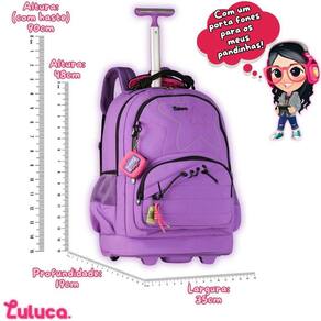 Mochila Luluca Rodinhas Escolar Juvenil Mala Viagem Meninas - Clio Style A mochila Luluca de Rodinhas é perfeita para transformar a rotina escolar em uma aventura cheia de cor e imaginação. Com design encantador, espaço de sobra e detalhes mágicos, ela une praticidade e fantasia em um só produto. Mais do que carregar materiais, essa mochila leva sonhos e sorrisos e faz cada dia começar com brilho nos olhos. Características Mochila: - Alça Retrátil para Transporte - Descanso Frontal em PU - Detalhes Customizados em Metal Vintage - Porta Fones de Ouvido Customizado Luluca - Bolsos Laterais para Garrafas - Bolsos Frontais Utilitários - Confecção em Poliéster Texturizado - Zíper com Puxadores Personalizados - Estrutura do Carrinho em Alumínio - Pega de Transporte Manual em Cordinha - Detalhes da Luluca Shine Coloridos - Porta Fones de Ouvido Personalizado Especificações Mochila: - Marca: Clio Style - Material: Poliéster - Medidas Aprox. axlxp : 48cm x 35cm x 19cm - Tema: Luluca Shine - Keep Glowing - Cor: Lilás - Capacidade Aprox. litros : 32 litros - Estilo do tecido: Poliéster Texturizado com detalhes coloridos Conteúdo da Embalagem: - LU27029 - 1x Mochila Luluca Rodinhas Escolar Juvenil Mala Viagem Meninas - Clio Style As cores podem variar entre as imagens mostradas acima e o produto. Imagens meramente ilustrativas. Todas as informações divulgadas são de responsabilidade exclusiva do fabricante. de 90 dias contra defeito de fabricação. Marca: Não Informado