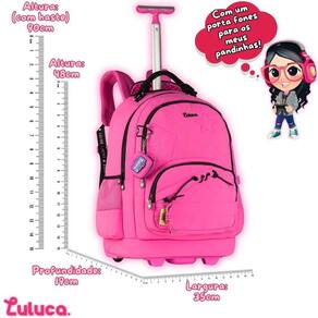 Mochila Luluca De Rodinhas Escolar Mala Viagem Meninas Rosa