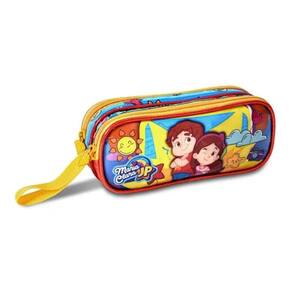 o estojo duplo maria clara e jp é confeccionada em poliéster com estampa rotativa, frente em pvc prensado em baixo relevo, 2 compartimentos e puxador em metal personalizado. Ficha técnica: