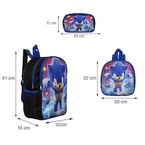 Kit Mochila Escolar Infantil Sonic The Hedgehog, acompanha lancheira e estojo. Possui alça de mão reforçada. Agora você pode levar sua mochila no seu dia a dia ou acompanhar você na escola. Sua abertura maior se dá por zíper com puxador. Na parte de dentro possui amplo espaço para a guardar diversos materiais como cadernos, livros e estojos. Na parte da frente, possui bolso com zíper para a guardar pertences de menor tamanho e bolsos laterais.Características: Alça superior Estampa no bolso frontal Zíper metálico Bolso LateralMedidas Lancheira: Altura: 22cm Largura: 24cmMedidas Estojo: Altura: 10cm Comprimento: 23cmMedidas Mochila: Altura: 41cm Largura: 15cm Comprimento: 31cmDúvidas Frequentes:1. Ela possui alça ajustávelR. Sim, ela possui alça ajustável para melhor conforto.2. Ela possui estampa frontalR. Sim, ela possui estampa frontal3. Ela possui quantas divisõesR. Ela possui 02 divisões para guardar suas coisas.4. Qual o material da mochilaR. Ela é feita em poliéster e plástico.Tags: Mochila, Escola, Escolar, Sonic, Infantil, Costas, Passeio, Estojo, Lancheira, Bolsa, Menino, Juvenil, Reforçada, Desenho.