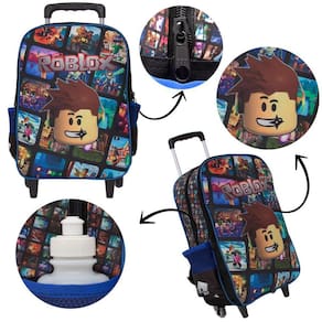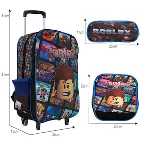 Kit Mochila Escolar Infantil Roblox Rodinhas, acompanha lancheira e estojo. Possui alça de mão reforçada. Agora você pode levar sua mochila no seu dia a dia ou acompanhar você na escola. Sua abertura maior se dá por zíper com puxador. Na parte de dentro possui amplo espaço para a guardar diversos materiais como cadernos, livros e estojos. Na parte da frente, possui bolso com zíper para a guardar pertences de menor tamanho e bolsos laterais.