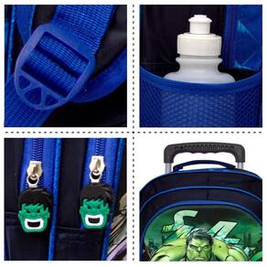 Mochila Escolar Infantil Incrível Hulk 3D Rodinhas possui alça de mão reforçada. Agora você pode levar sua mochila no seu dia a dia ou acompanhar você na escola. Sua abertura maior se dá por zíper com puxador. Na parte de dentro possui amplo espaço para a guardar diversos materiais como cadernos, livros e estojos. Na parte da frente, possui bolso com zíper para a guardar pertences de menor tamanho e bolsos laterais.Características:Alça superiorEstampa no bolso frontalZíper metálicoBolso LateralMedidas Mochila:Altura: 41cmLargura: 15cmComprimento: 32cmDúvidas Frequentes:1. Ela possui alça ajustávelR. Sim, ela possui alça ajustável para melhor conforto.2. Ela possui estampa frontalR. Sim, ela possui estampa frontal3. Ela possui quantas divisõesR. Ela possui 03 divisões para guardar suas coisas.4. Qual o material da mochilaR. Ela é feita em poliéster e plástico.Tags: Mochila, Escola, Escolar, Vingadores, Hulk, Incrivel Hulk, Infantil, Rodinhas, Passeio, Estojo, Lancheira, Bolsa, Menino, Juvenil, Reforçada, Desenho. Marca: Toys 2U