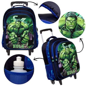 Mochila Escolar Infantil Incrível Hulk 3D Rodinhas possui alça de mão reforçada. Agora você pode levar sua mochila no seu dia a dia ou acompanhar você na escola. Sua abertura maior se dá por zíper com puxador. Na parte de dentro possui amplo espaço para a guardar diversos materiais como cadernos, livros e estojos. Na parte da frente, possui bolso com zíper para a guardar pertences de menor tamanho e bolsos laterais.Características:Alça superiorEstampa no bolso frontalZíper metálicoBolso LateralMedidas Mochila:Altura: 41cmLargura: 15cmComprimento: 32cmDúvidas Frequentes:1. Ela possui alça ajustávelR. Sim, ela possui alça ajustável para melhor conforto.2. Ela possui estampa frontalR. Sim, ela possui estampa frontal3. Ela possui quantas divisõesR. Ela possui 03 divisões para guardar suas coisas.4. Qual o material da mochilaR. Ela é feita em poliéster e plástico.Tags: Mochila, Escola, Escolar, Vingadores, Hulk, Incrivel Hulk, Infantil, Rodinhas, Passeio, Estojo, Lancheira, Bolsa, Menino, Juvenil, Reforçada, Desenho. Marca: Toys 2U