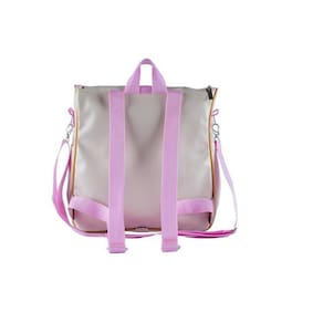 Mochila maternidade 2 em 1, bolsa de bebê Cor: marfim com rosa Mochila de maternidade para passeios, ela além de mochila, vira uma bolsa lateral. Confeccionada em material sintético importado.Forrada com material plástico impermeável branco.Ela possui alças de costas e alça tiracolo.Possui 3 bolsos internos em tela.Divisórias excelentes para auxiliar no seu dia a dia.Possuí um zíper principal que permite uma abertura completa, e um acesso melhor ao compartimento principal.Confeccionada com um bolso externo, fechado com zíper.Dimensões:Altura: 30 cmLargura: 20 cmComprimento: 32 cm Marca: The Gift Bolsas