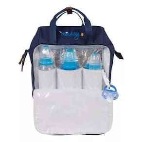 Baby Bag G - Mickey baby - com Trocador - Baby Go A Mochila de Passeio com trocador BabyGo foi desenvolvida para facilitar o seu dia a dia com o bebê. Ela possui um bolso frontal térmico, ideal para manter tudo quentinho e gostoso por até 4 horas Além disso, as alças possuem fechos de engate para que possam ser encaixadas no carrinho. Os compartimentos contêm etiquetas especiais que identificam a nossa sugestão de uso para cada uma delas: fraldas, lenços umedecidos, chupetas e mamadeiras. Assim, fica mais fácil deixar os pertences do seu bebê organizados.