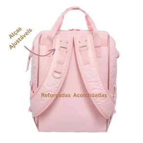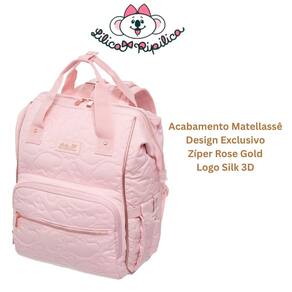 Mochila Maternidade Lilica Ripilica Little Shine Matelassê Rose Gold Bolsos Laterais Internos Externos Confortável Resistente
