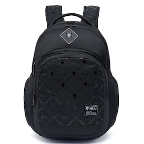 Mochila MCD com compartimento principal, compartimento frontal, espaço para notebook até 15,6", bordado frontal e etiquetas personalizadas.