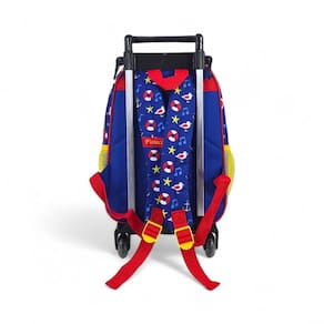 Medidas da mochila: 33 cm altura x 25 cm largura x 13 cm comprimentoCapacidade 10 L, 13polegadas - comporta cadernos brochura grandeSuporte com rodinhas de silicone e haste de alumínio Haste esticada com altura máxima de 70 cm.