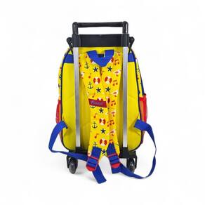 Medidas da mochila: 33 cm altura x 25 cm largura x 13 cm comprimentoCapacidade 10 L, 13polegadas - comporta cadernos brochura grandeSuporte com rodinhas de silicone e haste de alumínio Haste esticada com altura máxima de 70 cm.