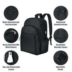 Mochila básica para escola resistente à água Material: 100% poliéster Mochila preta com compartimento para laptop de 15,6 polegadas, bolsa de trabalho para homens, bolsas de viagem resistentes à água, mochilas casuais para estudantes universitários, ensino médio Tamanho da mochila de trabalho de negócios: 43 × 30,5 × 16,5 cm, e o tamanho da bolsa pequena: 15 × 11 cm A mochila para faculdade tem 1 bolso principal com compartimento para laptop, 2 bolsos frontais e dois bolsos laterais, o bolso principal com um compartimento para laptop de 15,6 polegadas e o outro bolso principal para guardar livros e arquivos comerciais enquanto ainda tem espaço para necessidades diárias ou roupas para envio de um dia, compartimento frontal com organizador e 2 bolsos frontais oferecem bastante capacidade para a organização. 2 bolsos laterais elásticos para caber em garrafas de água ou umbal. Mochila de viagem para laptop, mochila de trabalho de negócios para homens e mulheres, resistente à água, mochila escolar para computador presente para homens e mulheres, serve para notebook de 15,6 polegadas. Enquanto isso, as alças de ombro podem ser ajustáveis e permitem que você encontre o ajuste perfeito para o seu corpo, reduzindo a tensão em seus ombros e costas. Todos os zíperes desta mochila de mão são resistentes e suaves Instruções de limpeza e vários usos: para prolongar a vida útil da mochila, recomendamos que a mochila seja lavada à mão em vez de à máquina, e depois pendure para secar, garantindo que ela permaneça em ótimas condições por muitos anos. Além disso, a mochila média feminina pode ser usada de várias maneiras diferentes, serve como mochila diária, mochila de viagem, mochila para laptop, mochila de trabalho, mochila escolar, mochila universitária e mochila do campus - MATERIAL DE ALTA QUALIDADE: a mochila escolar é feita de poliéster leve e resistente à água de alta qualidade, a mochila escolar com vários bolsos é perfeita para livros, roupas, garrafa de água e guarda-chuva, laptop, notebook, etc. Serve bem como mochila escolar profissional, mochilas casuais, perfeita para viagens de negócios, volta às aulas, compras e atividades ao ar livre no dia a dia - MULTIBOLSOS E DEMENSÃO: a mochila para faculdade tem 3 bolsos e dois bolsos laterais. Esta mochila de trabalho tem bolso principal com um compartimento para laptop de 15,6 polegadas e o compartimento é acolchoado para proteger o laptop de choques. E o bolso principal pode armazenar livros e arquivos comerciais enquanto ainda tem espaço para necessidades diárias ou roupas para envio de dois dias, e os bolsos frontais mantêm tudo organizado e facilmente acessível. Tamanho da mochila: 16,93 × 12 × 16,5 cm, tamanho da bolsa de cartão: 5,9 × 4,83 cm - Adequada para muitas ocasiões: a mochila para adolescentes é adequada para faculdade, deslocamento, negócios, trabalho, caminhadas, viagens de curto prazo, férias de fim de semana e outras atividades. E você pode carregá-la no avião. A mochila de mão garante um uso seguro e duradouro todos os dias ou fim de semana, serve bem como bolsa de mão pessoal de viagem, viagem de negócios, mochila de atividades ao ar livre, perfeita para homens, mulheres, meninos e meninas - Instruções de limpeza e vários usos: para prolongar a vida útil da mochila, recomendamos que a mochila seja lavada à mão em vez de à máquina, e depois pendure para secar, garantindo que ela permaneça em ótimas condições por muitos anos. Além disso, a mochila média feminina pode ser usada de várias maneiras diferentes, serve como mochila diária, mochila de viagem, mochila para laptop, mochila escolar, mochila de trabalho, mochila de computador, mochila de fim de semana e mochila do campus - Excelente serviço pós-venda: nossa mochila para escola com alças de ombro respiráveis, almofadas de espuma acolchoadas, alças ajustáveis, reforçadas ao redor e alças de ombro mais resistentes, torna a mochila de mão mais confortável e resistente, projetada para viagens, acampamento, fins de semana, escola. Se você tiver algum problema com a mochila, envie-nos um e-mail