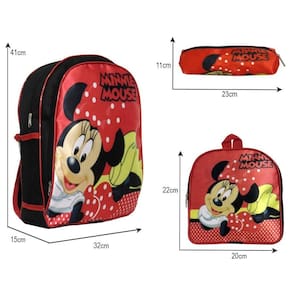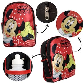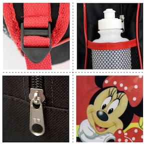 Kit Mochila Escolar Infantil Minnie Mouse, acompanha lancheira e estojo. Possui alça de mão reforçada. Agora você pode levar sua mochila no seu dia a dia ou acompanhar você na escola. Sua abertura maior se dá por zíper com puxador. Na parte de dentro possui amplo espaço para a guardar diversos materiais como cadernos, livros e estojos. Na parte da frente, possui bolso com zíper para a guardar pertences de menor tamanho e bolsos laterais.