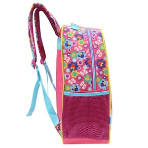 Ela conta com dois bolsos laterais ideais para garrafas, além de um bolso principal grande para guardar livros e cadernos. Os zíperes duplos são um detalhe à parte, personalizados com o nome da Minnie, trazendo um toque especial e temático.
