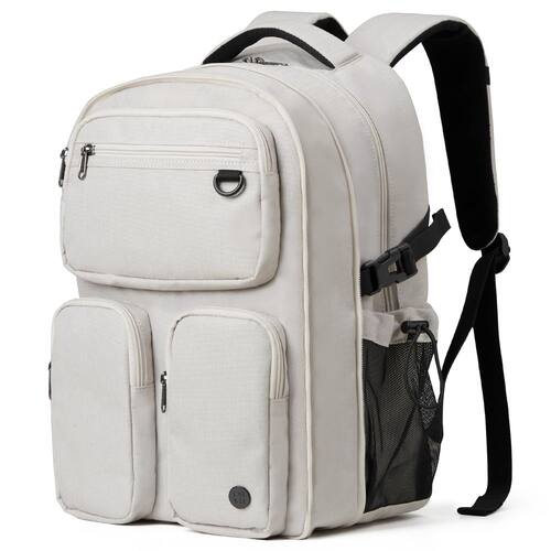 mixi Mochila de viagem para laptop, leve, masculina, feminina, bolsa para computador de 39.6 cm, com bolsos multifuncionais, 43 cm, Bege expansível, Clássico - ?Vários compartimentos?Esta mochila possui um compartimento principal com zíper, três bolsos frontais com zíper e dois bolsos laterais. O compartimento principal oferece um compartimento acolchoado dedicado para laptop de 15,6 polegadas, dois bolsos laterais são bons para guardar garrafas de água e guarda-chuvas. Acesso bem organizado e conveniente aos seus itens essenciais. - ?Durável?A mochila é feita com material resistente a rasgos e água de alta qualidade, oferece resistência extra e desempenho duradouro com o peso mais leve possível. O zíper YKK é suave e durável para um tempo de uso mais longo. - ?Respirável e confortável?Alças de ombro em forma de S de malha respirável confortáveis ajudam a aliviar o desconforto do seu ombro para uso prolongado. A alça superior é perfeita para quando você quiser carregar sua bolsa e dar uma pausa nos ombros. - ?Dimensão geral? As dimensões externas da mochila são 28 x 17 x 41 cm. Uma alça de bagagem na parte de trás que pode prender a alça telescópica da mala, para que você possa liberar seus ombros e mãos durante a viagem. - ?Mochila multiusos?Esta mochila elegante pode ser uma ótima companhia para homens, mulheres, viagens, negócios, uso diário e atividades ao ar livre. 3 anos de garantia. A satisfação dos clientes é a nossa maior busca.