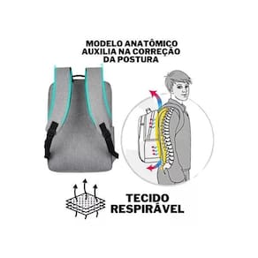 Se você procura praticidade e segurança para transportar seus objetos, seja de trabalho, escritório ou escolar, temos a opção perfeita para você Nossa mochila possui repartições extremamente úteis, além de ser impermeável, ela possui entrada para cabo usb que possibilita o uso de power bank para carregar seu celular Seu acabamento é extremamente resistente e de qualidade, possui uma alça reforçada completamente estofada e confortável com espuma, possui tecido respirável na parte de contato com as costas, além de ter um design anatômico que auxilia na correção da sua postura Possui espaço externo para armazenar sua garrafa de água também Perfeito para viagens de fim de semana, viajar, escola, compras, acampar, faculdade e outras atividades ao ar livre em sua vida diária.