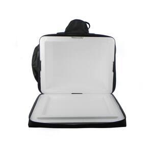 Cor Disponível: Preto Mochila Térmica com Isopor Alças e Zíper, bolsa para Entregador de Pizza , Lanches e etc... Mochila Confeccionada em Nylon Plástico Frontal Transparente para Endereços e Panfletos Alças Ajustáveis com Fecho de Engate Rápido Possui 4 Bolsos Laterais para Garrafas e 1 Porta Documentos Fechamento Através de Zíper Possui Partes Refletivas e Alça Superior Pés de Apoio em Plástico Resistente Medidas: Capacidade da Caixa de Isopor: 45 Litros Largura total Externa - 47 cm Largura total Interna - 40 cm Altura total Externa - 37,5 cm Altura total Interna - 31 cm Altura Porta Bebida - 11 cm Profundidade - 36 cm