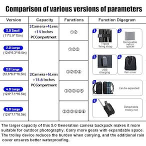 Apresentamos a mochila para câmera CADeN D6, uma solução profissional para fotógrafos e entusiastas de drones. Com dimensões de 28 x 15 x 38 cm e um peso de 0,79 kg, esta mochila leve é perfeita para homens e mulheres que procuram uma solução confortável e fácil de transportar. O interior espaçoso serve para 1 corpo de câmera, 4 lentes, flash, iPad e outros acessórios, enquanto o exterior possui material à prova de arranhões e à prova d'água para proteger seu equipamento. O bolso frontal tem um design de zíper oculto para armazenamento diário de acessórios e as laterais têm bolsas de malha de alta elasticidade para armazenamento de garrafas ou guarda-chuva. O outro lado possui um tripé ou poste de caminhada, e a alça conveniente oferece várias formas de transporte. Os cintos de ombro alongados são feitos de espuma viscoelástica de alta elasticidade, e o zíper de liga metálica é resistente à ferrugem por até 3 anos e não quebra dentro de 5 anos. O acolchoamento interno da bolsa é feito de espuma PE de 7 camadas e placa de PP, e os cintos de ombro e a alça têm tecnologia de reforço de aderência para uma capacidade de carga de até 50 kg. Esta mochila vem com garantia de 1 ano e é fabricada por uma fábrica confiável com mais de 1000 funcionários focados na fabricação de bolsas para câmera. Experimente a combinação perfeita de funcionalidade, durabilidade e estilo com a mochila para câmera CADeN D6. - ?Visão geral do produto?Dimensões da mochila para câmera CADeN D6: 28 x 14,9 x 38 cm, peso 0,79 kg. Esta mochila profissional para câmera fotográfica serve para fotógrafos homens/mulheres, leve e fácil de transportar. - ?Grande capacidade?A bolsa para câmera CADeN D6 serve para 1 corpo de câmera + 4 lentes + flash + iPad + tripé e outros acessórios. Ou para armazenamento de drone DJI. - ?Multifunções??Material à prova de arranhões e água protege sua câmera de danos; ?Design com zíper oculto do bolso frontal, melhor para armazenamento diário de acessórios; ?Bolsa de malha de alta elasticidade em um lado para armazenamento de garrafa/guarda-chuva, o outro lado da bolsa para câmera é tripé ou poste de trekking; ?Maneira de transporte múltipla de alça conveniente; ?Os cintos de ombro alongados são feitos de espuma viscoelástica de alta elasticidade, design muito bom para os americanos. - ?Multifunções? O zíper de liga CADeN não enferruja dentro de 3 anos e não quebra dentro de 5 anos; um lado para armazenamento do iPad com adesivo fixado dentro da bolsa da câmera; os enchimentos internos da bolsa são feitos de espuma de PE de 7 camadas e placa de polipropileno, bem protegem sua câmera de choque, muito durável; os cintos de ombro e a alça conectados à mochila da câmera têm tecnologia de reforço de barra que suporta até 500 unidades. kg (1100) 2 lb). Melhor cuidado para suas câmeras, lentes, flashes, tripé e outros acessórios. - ?Serviços perfeitos? Garantia de 1 ano - Qualquer problema dentro de 1 ano, ofereceremos um novo para você; 30 anos de fábrica com mais de 1000 funcionários focados na fabricação de bolsas de câmera, confiável para você.