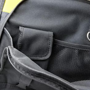 Divisória removível com bolsos para ferramentas usadas com frequência; compartimento separado para ferramentas elétricas ou laptop; tecido denier super resistente 600 x 600; bolsos laterais reforçados; alças elásticas externas para auxiliar a fixação de objetos maiores; mochila muito reforçada, ideal para transportar as ferramentas confortavelmente.