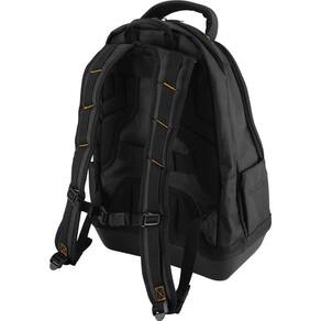 Possui alças almofadadas com costuras reforçadas, duas alças de mão (uma para movimentar a mochila e outra para pendurá-la), apoio para costas almofadado com tecido respirável, cinta peitoral ajustável e base em polipropileno, resistente a impactos e água, garantindo maior durabilidade. Conta ainda com 24 bolsos, sendo 7 bolsos externos e 17 bolsos internos, além de compartimentos para ferramentas com 11 encaixes.