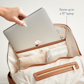 Itzy Ritzy Mochila Eras para fraldas – Mochila para bebês de grande capacidade com design neutro, 15 bolsos, trocador de fraldas, alças de carrinho de bebê e alças confortáveis, conhaque - 15 bolsos multifuncionais: esta elegante mochila de fraldas possui 15 bolsos para melhor organização, incluindo um compartimento dedicado para laptop que cabe em um dispositivo de até 15 polegadas. Medindo 33 cm C x 19 cm L x 43 cm A, oferece muito espaço para fraldas, lenços, roupas, brinquedos e todos os seus equipamentos de bebê – o suficiente para lidar com dias de parque, creches ou aventuras de fim de semana. - Acesso rápido e design inteligente: a mochila Eras de couro vegano para fraldas permite que você se mantenha ativo com suas confortáveis alças de mochila e alças embutidas para carrinho de bebê. Isso libera suas mãos para lidar com seu filho, pegar um café ou navegar pela calçada lotada. Além disso, o bolso frontal de fácil acesso com um fecho magnético permite que você pegue itens essenciais como lenços ou chupetas sem quebrar o passo. - MUDANDO DE ESTAÇÃO EM MOVIMENTO: Seja o campeão de fraldas com a bolsa Eras. Inclui um trocador de fraldas limpável e lavável na máquina com seu próprio bolso dedicado, mantendo a bagunça contida e proporcionando um local limpo para trocar fraldas em qualquer lugar. - Pronto para viagem com bolso para laptop: a vida com um pequeno não para no aeroporto. A mochila Eras transita perfeitamente da bolsa de fraldas para a bagagem de mão do dia a dia. A bolsa de bagagem oculta desliza sobre a maioria das alças de bagagem para facilitar a navegação no aeroporto. Precisa trazer itens essenciais de trabalho? O compartimento dedicado para laptop mantém você coberto. Além disso, o interior espaçoso comporta itens essenciais para fraldas, uma muda de roupa ou necessidades de viagem. - O estilo encontra a funcionalidade: feita de couro vegano premium, esta mochila apresenta um design limpo, neutro e minimalista que complementa seu visual diário. Seja você um novo pai, um profissional experiente ou alguém que precisa de uma mochila elegante e funcional, a mochila Eras é uma escolha perfeita. Ela permite que você mostre seu estilo pessoal enquanto mantém você organizado e pronto para qualquer coisa que a paternidade oferecer.