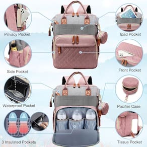 A mochila prática para fraldas para os pais! - Você receberá: uma bolsa de fraldas moderna (tamanho: 40,6 cm x 15,2 cm x 30,5 cm, peso: 90 kg), uma almofada (tamanho: 68,6 cm x 48,3 cm), 2 alças de carrinho de bebê e uma capa de chupeta. 16 bolsos incluem compartimento com fecho de zíper duplo e 3 bolsos isolados. Esta bolsa de bebê é leve, grande capacidade e ainda parece compacta. É conveniente e faz você relaxar se você usá-la para sair. - 16 bolsos para organização: 16 bolsos incluem bolso à prova d'água, bolso lateral, bolso de tecido, 1 capa pequena, 2 bolsos frontais, compartimento principal com zíper duplo, 2 bolsos para privacidade, 4 bolsos elásticos, 3 bolsos isolados (comporta uma garrafa de leite de 141 g - 312 g). Estes bolsos são suficientes para guardar quase itens de bebê, deixá-los bem organizados e obtê-los rapidamente. - Design atencioso e amigável: uma pequena capa pode segurar a chupeta e obtê-la rapidamente. Bolso de lenços com zíper é mais limpo. 2 alças de carrinho podem pendurar a bolsa no carrinho. A alça superior fácil de pegar também a torna uma sacola. O design ergonômico nas costas e a alça de ombro acolchoada grossa fazem você se sentir confortável e relaxado. - Durável e não deformável: esta bolsa de bebê é feita de tecido oxford, resistente a rasgos e resistente à água. A armação de metal de alta qualidade é usada no interior para garantir que a estrutura do poço não seja fácil de deformar. Os zíperes duplos suaves são fáceis de abrir e fechar. As costuras reforçadas da alça de ombro e da alça garantem resistência a rasgos quando pesadas. - Adequado para várias ocasiões: esta bolsa de fraldas conveniente é adequada para muitas ocasiões, como festas, compras, passeios, viagens e assim por diante. É perfeita para um presente ideal de chá de bebê. Vamos lá! Adicione ao seu carrinho agora! Oferecemos atendimento profissional ao cliente, você não perderá nada.