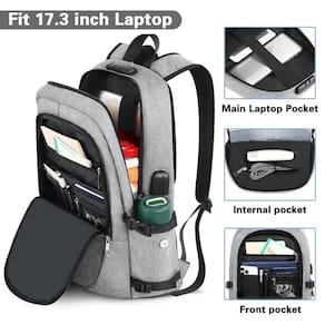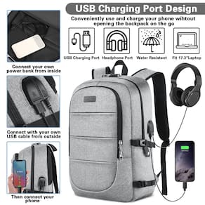 laptop backpack - Dimensions: This backpack fits up to 17.3" laptop. Exterior dimensions (L*W*H):19.5x 12.5 x 5.3 inch. Simple and practical, lightweight and comfortable, very suitable for travel, and it also work well as business or work backpack, computer bag, hiking bag, daily bag - Anti-theft Design: This backpack apply anti-theft design techology. Includes a theft proof combination lock durable metal zippers, no thief can open your backpack easily. Provide security for your journey - External USB Charger Port & Headphone Jack: USB charging backpack with charging cable is convenient to charge smart phone, tablet, other devices. Headphone Jack: you can listen to your favorite music when you are carring the backpack on road. Note: Not Include Power Bank - Comfortable Back Support System: Ergonomic design of S-shape padded shoulder straps and padding back design, made from high elastic and breathable sponge and fabric, equipment with adjustable chest buckle and ring type adjustable hasp, adjust the strap length freely, reduce the burden of weight, protect the back and shoulder effectively, more comfortable for your life - Durable Materia: Backpack made of tear-resistant durable nylon fabric and its dual-access zipper with anti-theft design allows for easy access and increased safety. Lightweight, durable and anti-theft is the biggest feature of this backpack. Age: over 12 years old