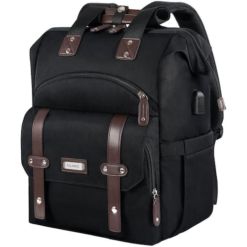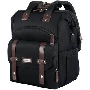 Design de abertura grande Na ponta dos seus dedos, sem pressa. Não mexa com a palheta e o lugar. Fácil de guardar e tirar. Grande capacidade e compartimentos espaçosos Bolsos internos: 1 compartimento para laptop acolchoado. Serve para até 39,6 cm. 1 compartimento para iPad acolchoado. - Ampla abertura na parte superior e traseira. 1 bolso principal espaçoso. Mantenha coisas diárias como fichários, livros, roupas, etc. 1 bolso com zíper. Guarde carteira/passaporte, etc. 2 bolsos abertos. Guarde telefones, óculos de sol e outros itens pequenos. 2 bolsos laterais. Guarde para pequenas garrafas de água, copos, guarda-chuva, etc. Bolsos externos: 2 bolsos externos frontais. 1 bolso traseiro antifurto com zíper. - ?Mochila grande para laptop?: 43 x 30 x 21 cm, capacidade: 30 L. Nylon resistente e repelente à água com zíperes de metal resistentes. Design elegante e moderno, espaçoso para tudo o que você precisa, uma boa escolha para viagens diárias, viagens de negócios, mochila para mulheres, mochila de trabalho, bolsa de mão etc. - ?Design amplo e aberto?: esta mochila de viagem para laptop tem uma estrutura retangular para manter o suporte grande, proporcionando acesso visível e fácil aos itens na parte inferior. Chega de cavar. Pode ter 19,8 cm de largura aberta. As bordas reforçadas e a estrutura de aço do compartimento principal mantêm a ótima forma da bolsa e são resistentes - Vários bolsos: 2 bolsos externos, 2 bolsos externos em ambos os lados, 1 bolso principal espaçoso, 7 bolsos internos, 1 bolso interno com zíper traseiro. Bolso principal com compartimento dedicado para laptop de 17,3 polegadas, bolso para tablet para iPad de 10,5 polegadas. Espaçosa o suficiente para guardar seus livros A4, iPad, Kindle, celular, carteira, guarda-chuva, cosméticos, etc - Conforto e conveniência: alça de ombro larga acolchoada ajustável, libera sua pressão nas costas e nos ombros. A alça de bagagem pode ser facilmente inserida e fixada à alça do carrinho ou mala, o que a torna muito conveniente de transportar; com uma porta de carregamento USB estendida na lateral da mochila e um cabo de carregamento embutido, ótimo carregamento fácil do seu telefone conectando seu carregador portátil (o Power Bank não está incluído) - Bolsa multifuncional: a função antirroubo da aba magnética de abertura frontal e o bolso traseiro com zíper podem proteger seus pertences. Esta mochila pode ser uma excelente companhia para universidade, viagens, negócios, uso diário e atividades ao ar livre; alça de couro exclusiva. O design manual torna esta bolsa boa para o trabalho como uma bolsa de mão de um ombro. Prático Natal Ano Novo para amigos, professores ou dia das mães - Este item não se destina a ser utilizado por crianças menores de 12 anos.