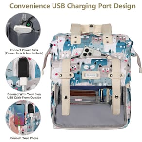 Design de abertura grande Na ponta dos seus dedos, sem pressa. Não mexa com a palheta e o lugar. Fácil de guardar e tirar. Grande capacidade e compartimentos espaçosos Bolsos internos: 1 compartimento para laptop acolchoado. Serve para até 39,6 cm. 1 compartimento para iPad acolchoado. - Ampla abertura na parte superior e traseira. 1 bolso principal espaçoso. Mantenha coisas diárias como fichários, livros, roupas, etc. 1 bolso com zíper. Guarde carteira/passaporte, etc. 2 bolsos abertos. Guarde telefones, óculos de sol e outros itens pequenos. 2 bolsos laterais. Guarde para pequenas garrafas de água, copos, guarda-chuva, etc. Bolsos externos: 2 bolsos externos frontais. 1 bolso traseiro antifurto com zíper. - [Mochila para laptop com estampa de desenho animado]: Tamanho: 29 cm x 17,8 cm x 39,9 cm (C x L x A), Capacidade: 20 L. Esta mochila para laptop de viagem é projetada com muitos bolsos: 2 bolsos frontais para guardar suas chaves, canetas, carteira; 4 bolsos internos pequenos; 2 bolsos laterais para garrafas de água ou guarda-chuva; 1 bolso principal para caber em algumas roupas, cadernos, carregador portátil; 1 compartimento para laptop de 15,6 polegadas e 1 compartimento para iPad de 11 polegadas, 1 bolso interno com zíper, 1 bolso interno com zíper, 1 Bolso traseiro antirroubo para celular. - Design amplo e porta de carregamento USB: o compartimento principal adota um design de ampla abertura, capacidade de acomodação espaçosa e forte que é fácil de organizar e acessar. Cabo USB interno integrado para conectar seu dispositivo eletrônico. É mais conveniente carregar seu telefone quando você caminha (o carregador portátil e o cabo extra não estão incluídos) - Confortável e conveniente: esta mochila universitária feminina com alças largas acolchoadas ajustáveis pode liberar sua pressão nas costas e nos ombros, pode aliviar bem a fadiga do ombro para garantir que você fique confortável durante todo o dia, boa para o trabalho, negócios e viagens. A alça de bagagem pode ser inserida e fixada na alça do carrinho ou mala, tornando-a muito conveniente de carregar. Alça de couro de alta qualidade, pode usá-la como bolsa de ombro. - Confortável e conveniente: esta mochila universitária feminina com alças largas acolchoadas ajustáveis pode liberar sua pressão nas costas e nos ombros, pode aliviar bem a fadiga do ombro para garantir que você fique confortável durante todo o dia, ótima para trabalho, negócios e viagens. A alça de bagagem pode ser inserida e fixada na alça do carrinho ou mala, tornando-a muito conveniente de carregar. Alça de couro de alta qualidade, pode usá-la como bolsa de ombro. - Mochila multiuso: ótima como mochila de viagem de negócios, mochila para laptop de trabalho, mochila de viagem para laptop, mochila de trabalho para professores médicos, bolsa de mão para mulheres, mochila de fim de semana. Conheça seu uso diário e atividades ao ar livre, mochila prática para professores, amigos, dia das mães, dia de ação de graças, Natal e ano novo - Este item não se destina a ser utilizado por crianças menores de 12 anos.