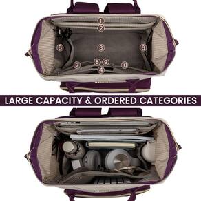 Tecido: tecido durável e resistente à água (poliéster + couro PU). Função: mochila feminina, mochila para laptop, mochila escolar, mochila Lovevoook, mochila feminina e assim por diante. Cenas: bom para escola, faculdade, universidade, viagens, trabalho, um presente perfeito para mulheres, professores, enfermeiros, educadores e outros empresários. - ?Mochila de trabalho de grande capacidade?A mochila feminina LOVEVOOK usa um design retangular de abertura da moldura para manter a grande capacidade e facilitar seu acesso rápido. - ?Mochila para laptop com vários compartimentos? A mochila para laptop tem um total de 5 compartimentos e 19 bolsos, convenientes para sua organização e armazenamento. - ?Dimensão? 16,17,8 x 29 x 14,5 cm. Contém um compartimento separado para computador que pode acomodar 15,6 polegadas e um compartimento para iPad que pode acomodar até 12,9 polegadas. - ?Bolso antifurto?A alça de bagagem permite que você fixe facilmente sua mochila no estojo do carrinho. O bolso antirroubo na parte traseira torna seus pertences mais seguros e sua viagem mais fácil. - ?Confortável e resistente?O cinto de ombro e a parte traseira são equipados com almofadas de espuma de alta qualidade, que são respiráveis e reduzem a pressão. A grande capacidade e os bolsos laterais elásticos podem armazenar cerca de copos de água de 1,2 litros.