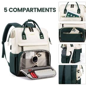 LOVEVOOK Mochila para laptop feminina, mochila de trabalho, bolsa de professor - ?Mochila de trabalho de grande capacidade?A mochila feminina LOVEVOOK usa um design retangular de abertura da moldura para manter a grande capacidade e facilitar seu acesso rápido. - ?Mochila para laptop com vários compartimentos? A mochila para laptop tem um total de 5 compartimentos e 19 bolsos, convenientes para sua organização e armazenamento. - ?Dimensão? 17,5 x 29 x 14 cm. Contém um compartimento separado para computador que pode acomodar 17,3 polegadas e um compartimento para iPad que pode acomodar até 12,9 polegadas. - ?Bolso antifurto?A alça de bagagem permite que você fixe facilmente sua mochila no estojo do carrinho. O bolso antirroubo na parte traseira torna seus pertences mais seguros e sua viagem mais fácil. - ?Confortável e resistente?O cinto de ombro e a parte traseira são equipados com almofadas de espuma de alta qualidade, que são respiráveis e reduzem a pressão. A grande capacidade e os bolsos laterais elásticos podem armazenar cerca de copos de água de 1,2 litros.