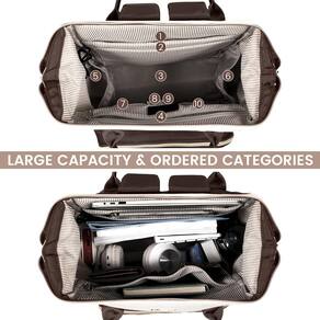 LOVEVOOK Mochila para laptop feminina, mochila de trabalho, bolsa de professor - ?Mochila de trabalho de grande capacidade?A mochila feminina LOVEVOOK usa um design retangular de abertura da moldura para manter a grande capacidade e facilitar seu acesso rápido. - ?Mochila para laptop com vários compartimentos? A mochila para laptop tem um total de 5 compartimentos e 19 bolsos, convenientes para sua organização e armazenamento. - ?Dimensão? 17,5 x 29 x 14 cm. Contém um compartimento separado para computador que pode acomodar 17,3 polegadas e um compartimento para iPad que pode acomodar até 12,9 polegadas. - ?Bolso antifurto?A alça de bagagem permite que você fixe facilmente sua mochila no estojo do carrinho. O bolso antirroubo na parte traseira torna seus pertences mais seguros e sua viagem mais fácil. - ?Confortável e resistente?O cinto de ombro e a parte traseira são equipados com almofadas de espuma de alta qualidade, que são respiráveis e reduzem a pressão. A grande capacidade e os bolsos laterais elásticos podem armazenar cerca de copos de água de 1,2 litros.