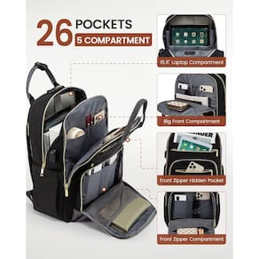 Benefícios desta mochila: 1. Para permitir que você carregue seus itens essenciais de forma confortável e fácil. 2. Para proteger esses itens contra roubo, danos físicos e condições climáticas adversas. 3. Para manter seus itens organizados e facilmente acessíveis para sempre que você precisar tirá-los. 4. Para suportar o desgaste da vida na estrada Volume/capacidade: esta é uma das variáveis mais importantes a considerar ao escolher uma mochila. Projetada para caminhadas e trekking e não para viagens. Capa para laptop – uma capa para laptop é importante para muitos viajantes, não apenas para proteção contra impactos e derramamentos de líquidos, mas também para organização, portanto, certifique-se de que a mochila que você escolher tenha uma, se você estiver levando um laptop. A capa manterá seu laptop separado dos outros itens na bolsa para facilitar o acesso. Compartimentos e bolsos: uma mochila com vários compartimentos e bolsos frontais de acesso rápido é útil para organizar seus itens, mas não use os compartimentos externos menores para objetos de valor se roubar roubos for uma preocupação. Bolsas laterais externas elásticas – são projetadas para guardar garrafas de água ou bexigas de água. Elas são um recurso útil a ser observado, pois muitas vezes você vai querer manter uma garrafa de água fora da bolsa para facilitar o acesso quando estiver em clima quente ou ao fazer uma caminhada de um dia. - ?Grande capacidade?Tamanho: 30,5 cm C 40,6 cm A 19,5 cm P. A mochila para laptop tem vários bolsos divisórios, fácil de guardar laptop de 15,6 polegadas, ipads, telefone, garrafa de água, guarda-chuva, leitores, diário, revistas, roupas, canetas, carteira e assim por diante. - ?Muito espaço de armazenamento e bolsos?A mochila para laptop tem um compartimento separado para laptop de 15,6 polegadas e um compartimento para iPad. A mochila antirroubo tem um compartimento espaçoso que pode ser espaçoso para as necessidades diárias, acessórios eletrônicos tecnológicos. Compartimento frontal com muitos bolsos, um bolso antirroubo na parte de trás e dois bolsos laterais para garrafa de água tornam seus itens organizados e fáceis de encontrar. - ?Design antirroubo?Mochila para laptop com trava de senha fixa e um bolso antirroubo na parte traseira. É seguro para proteger seus itens valiosos dentro. Não precisa se preocupar com roubos, abrindo facilmente sua mochila quando você estiver viajando ou fazendo fila. - ?Material durável: a mochila para laptop é feita de nylon e poliéster de alta densidade resistente a rasgos, durável e à prova d'água por dentro e por fora. As partes interna e externa da mochila são costuradas por acolchoados, o que traz proteção física aos seus itens e pode desempenhar um papel protetor absoluto. - ?Mochila multiusos?Esta mochila elegante é perfeita para universidade, viagens, negócios, uso diário e atividades ao ar livre. Esta é uma mochila ideal para enfermeiros, médicos e outras pessoas de negócios. A melhor opção de presente. - ?Design de porta USB?Ótimo design tecnológico. Você pode conectar facilmente seu telefone à porta USB, oferecendo uma maneira mais conveniente de carregar seu telefone enquanto caminha. (Power bank não está incluído)