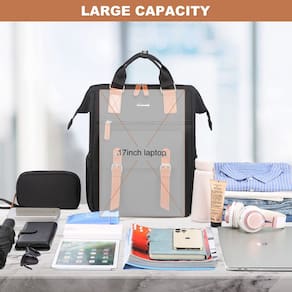 LOVEVOOK Mochila feminina para laptop para trabalho, viagem, negócios, negócios, bolsa para computador, professor, médico, enfermeira, bolsa universitária, 43 cm, preto-marrom, 1 preto-marrom, - Bolsa mochila durável para mulheres: Dimensão 30 cm C x 14 cm L x 47 cm A. Tamanho da caixa organizadora eletrônica: 19 cm C x 5 cm L x 10 cm A. Vem com um saco de pó para armazenamento. A mochila acolchoada com compartimento para laptop é uma ótima bolsa de laptop para mulheres no trabalho, aplicável a professores, médicos, enfermeiros, viajantes. Fácil de organizar todos os suprimentos e cabe bem em laptops de até 17 polegadas. - Muitos bolsos e armazenamento grande: a mochila para laptop feminina tem muitos bolsos para diferentes tipos de itens. Como uma bolsa de trabalho, mochila universitária ou bolsa de enfermagem (itens essenciais de enfermagem), ela guarda muitas coisas e as mantém organizadas. A bolsa pequena adicional tem um bom tamanho para colocar algumas coisas pequenas ou até mesmo um carregador de laptop. A bolsa pode ser usada como organizador de eletrônicos, bolsa pequena, organizador de cabos de viagem, acessórios de enfermeira para trabalho ou organizador de cosméticos. - Essenciais de viagem para sua escapada: esta mochila de viagem com alça de carrinho pode liberar seus ombros. Os bolsos laterais são elásticos para caber em garrafas de água mais grossas. Com um bolso antifurto oculto, você não precisa se preocupar com ladrões patrocinando sua mochila. - Mochila para laptop com porta USB: há uma porta de carregamento USB estendida na lateral da mochila e um cabo de carregamento embutido. Você pode carregar seu celular a qualquer hora e em qualquer lugar (excluindo o carregador portátil) - Mochila de computador perfeita para todas as ocasiões. Esta mochila com compartimento para laptop é ótima para trabalho, viagens, deslocamento, faculdade, hospital, uso diário. Presentes práticos para todas as pessoas de quem você gosta. É a melhor escolha como presente para homens e mulheres no Dia do Professor, Dia dos Namorados, Dia das Mães, Dia de Natal e qualquer outro festival.