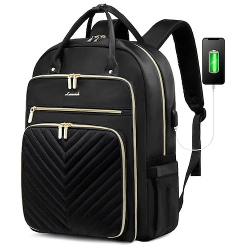 LOVEVOOK Mochila feminina para laptop moderna, com porta USB, à prova d'água para o trabalho., Preto, 15,6 polegadas, Moda casual - ?Leve e durável?-- A mochila para laptop LOVEVOOK usa tecidos atualizados, que são tecidos leves e duráveis de alta resistência. A mochila elegante pesa apenas 800 g, tornando-a a escolha perfeita para viagens e trabalho. - ?Grande capacidade e design com vários bolsos?-- Mochila de 39,6 cm: 43 x 32 x 20 cm (A x C x L); 44 cm Mochila: 46 x 34 x 21,6 cm (A x C x L). 16 bolsos projetados para manter todos os seus itens organizados. - ?Alça confortável e grande? - Nossa bolsa para laptop adota um design ergonômico, e a alça de ombro de esponja espessa garante o conforto dos ombros, para que você não precise se preocupar com a fadiga causada por viagens de longo prazo. O design da alça grande é mais conveniente para você carregar a bolsa rapidamente. - ?Porta de carregamento USB?-- Interface USB com design de cabo integrado, ótima conveniência para carregar seus dispositivos eletrônicos conectando seu próprio carregador portátil (carregador portátil não incluído). - ?Aparência requintada? - A aparência simples e elegante é adequada para muitas ocasiões, seja no trabalho ou no dia a dia, fará você se destacar.