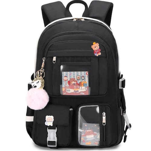 Idade recomendada: 3-14 anos - ?Tamanho grande e presente?: o tamanho da mochila é de 31 x 15 x 45 cm (C x L x A), peso: 700 g. A bolsa para laptop com compartimento acolchoado serve para tablets de 13,3,15,6 e 16 polegadas. Esta bolsa também vem com pingente de chave de bola fofa e distintivo de personalidade como presente, torna as bolsas mais elegantes e exclusivas - ?Material impermeável e zíper suave?: a mochila campus é feita de tecido de nylon à prova d'água, ultraleve de alta densidade e forro de poliéster com estampa fofa. O fecho de zíper de metal é utilizado pelos zíperes de qualidade premium para garantir o uso duradouro - ?Segurança e confortável?: o cinto atencioso em ambos os lados pode criar uma base sólida de suporte se você estiver embalando muitas coisas nas mochilas. As alças largas e espessas em forma de S são bem acolchoadas, ajustáveis e confortáveis de carregar. O cinto de bagagem na parte de trás pode ser colocado na bagagem/mala para tornar sua viagem mais conveniente - ?Vários compartimentos e grande capacidade?: a mochila grande tem 7 bolsos separados de tamanhos diferentes e dois bolsos laterais para armazenamento diário. Os cinco bolsos frontais podem guardar dispositivos de carregamento e outros itens pequenos, convenientes para sua organização diária. O bolso principal inclui capa acolchoada para laptop com cinto elástico e bolsos internos ocultos com zíper. Os bolsos frontais para ferramentas também vêm com vários compartimentos para fornecer espaço espaçoso para as necessidades - ?Para todas as idades e ocasiões? A mochila à prova d'água é elegante o suficiente para uso casual e estudantil, enquanto o design oferece multifuncionalidade. Mochila perfeita para adolescentes, meninas, senhoras. A mochila básica multiuso para a maioria das suas necessidades, fácil de combinar com suas roupas, adequada para viagens curtas, trabalho, compras, universidade, escola, etc.