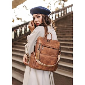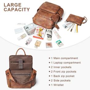 Mochila feminina de couro para laptop Shrrie Material externo: couro PU de alta qualidade Tamanho: (C) 15 x (L) 19 x (A) 38 cm Peso: 900 g. Estrutura: 11 bolsos Mochila feminina de couro para viagem com detalhe de bolsa de ombro Design de mochila aberta superior Costura reforçada. Parte traseira da bolsa com costura reforçada para sua durabilidade. Material de alta qualidade. Todos os acessórios são feitos de liga metálica, anticorrosão, modernos e duráveis. Formas de transporte conversíveis A alça longa removível permite que a bolsa seja usada como bolsa de ombro ou mochila. - ?Mochila de couro para laptop feminina?A mochila para laptop é feita de couro vegano impermeável de alta qualidade, resistente e durável. Total de 9 bolsos, fácil de organizar todas as necessidades de trabalho, suprimentos universitários e itens essenciais de viagem. - ?Mochila moderna acolchoada para computador?A mochila feminina tem um bolso para laptop de 15,6 polegadas. O compartimento dedicado para laptop com algodão acolchoado costurado ao redor maximiza a proteção física de seus dispositivos eletrônicos. - ?Grande capacidade?A mochila de trabalho de grande capacidade tem vários bolsos divisórios, fácil de guardar laptop, ipads, telefone, fichário, garrafa de água, guarda-chuva, revistas, canetas, carteira e assim por diante. Profissional e bem feita para trabalho, negócios, viagens, deslocamento, faculdade, professor, enfermeira, uso diário - ?Design prático de alça de bagagem?A mochila de couro feminina é projetada para viajar, ajuda você a liberar suas mãos e costas do fardo. Torne sua viagem mais conveniente e agradável. A mochila de viagem à prova d'água cabe sob o assento e também atende aos requisitos de bagagem de mão. - ?Presentes ideais?A mochila universitária Shrrie com compartimento para laptop é ótima para o trabalho, viagens, viagens, faculdade, hospital, viagem de negócios, escapada, etc. É uma boa escolha como presente para mulheres ou homens no Dia das Mães/Dia dos Pais, Dia de Ação de Graças, Dia de Natal, formatura, Dia dos Namorados, aniversário, Ano Novo e outros festivais.