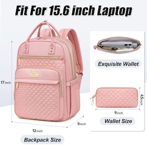 1 - ?Mochila e carteira moderna para laptop? A mochila para laptop com conjunto de carteira, feita de tecido de nylon resistente à água, resistente a arranhões e rasgos. Forro de algodão listrado personalizado de alta qualidade, zíperes banhados a ouro requintados, suave e durável. Tamanho da mochila: 30 cm C x 20 cm L x 43 cm A, tamanho da carteira: 11 cm C x 23 cm A, Capacidade da mochila: 30 L, Peso 9 kg, fácil de transportar, tornando-a conveniente para uso diário - ?Mochila de viagem de grande capacidade? Mochila para laptop com total de 5 compartimentos e 16 bolsos: 2 compartimentos principais grandes, 1 compartimento separado para laptop de 15,6 polegadas, 1 compartimento para iPad e 1 compartimento separado seco e molhado, para guardar o laptop, iPad, telefones, carregador, pasta, garrafa de água, guarda-chuva, guardanapo, revistas, roupas, canetas, carteiras e muito mais, bolsos amplos mantêm seus itens de viagem perfeitamente posicionados - Mochila multifuncional para o trabalho? A mochila é projetada com um compartimento protetor separado de espuma de algodão para laptop. O bolso de separação úmida e seca na frente pode guardar toalhas molhadas e cosméticos. O bolso antirroubo na parte traseira torna seu passaporte, carteira, celular e outros objetos de valor mais seguros sem se preocupar em ser roubado. A alça traseira para bagagem permite que você prenda facilmente a mochila ao carrinho, tornando sua viagem de trabalho mais fácil e agradável - ?Mochila multiusos resistente à água? Esta mochila feminina pode ser usada em todos os cenários, perfeita para trabalho, negócios, faculdade, viagens, viagens de avião, uso diário e atividades ao ar livre. Pode ser usada como mochila de trabalho, mochila universitária, mochila casual, mochila de viagem, mochila de viagem de avião, mochila de professor e mochila de enfermeira - ?Design perfeito e mochila universitária de alta qualidade? A aparência desta mochila feminina para laptop é feita de um design acolchoado delicado, o tecido externo é feito de material de nylon resistente à água de alta qualidade, com forro de algodão listrado. Você sempre pode confiar que é elegante e perfeita, as alças são reforçadas com rebites e cada ponto de desconforto da mochila é reforçado e costurado para durabilidade absoluta. É a melhor escolha para dar de presente