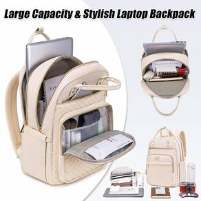 1 - ?Mochila e carteira moderna para laptop? A mochila para laptop com conjunto de carteira, feita de tecido de nylon resistente à água, resistente a arranhões e rasgos. Forro de algodão listrado personalizado de alta qualidade, zíperes banhados a ouro requintados, suave e durável. Tamanho da mochila: 30 cm C x 20 cm L x 43 cm A, tamanho da carteira: 11 cm C x 23 cm A, Capacidade da mochila: 30 L, Peso 9 kg, fácil de transportar, tornando-a conveniente para uso diário - ?Mochila de viagem de grande capacidade? Mochila para laptop com total de 5 compartimentos e 16 bolsos: 2 compartimentos principais grandes, 1 compartimento separado para laptop de 15,6 polegadas, 1 compartimento para iPad e 1 compartimento separado seco e molhado, para guardar o laptop, iPad, telefones, carregador, pasta, garrafa de água, guarda-chuva, guardanapo, revistas, roupas, canetas, carteiras e muito mais, bolsos amplos mantêm seus itens de viagem perfeitamente posicionados - Mochila multifuncional para o trabalho? A mochila é projetada com um compartimento protetor separado de espuma de algodão para laptop. O bolso de separação úmida e seca na frente pode guardar toalhas molhadas e cosméticos. O bolso antirroubo na parte traseira torna seu passaporte, carteira, celular e outros objetos de valor mais seguros sem se preocupar em ser roubado. A alça traseira para bagagem permite que você prenda facilmente a mochila ao carrinho, tornando sua viagem de trabalho mais fácil e agradável - ?Mochila multiusos resistente à água? Esta mochila feminina pode ser usada em todos os cenários, perfeita para trabalho, negócios, faculdade, viagens, viagens de avião, uso diário e atividades ao ar livre. Pode ser usada como mochila de trabalho, mochila universitária, mochila casual, mochila de viagem, mochila de viagem de avião, mochila de professor e mochila de enfermeira - ?Design perfeito e mochila universitária de alta qualidade? A aparência desta mochila feminina para laptop é feita de um design acolchoado delicado, o tecido externo é feito de material de nylon resistente à água de alta qualidade, com forro de algodão listrado. Você sempre pode confiar que é elegante e perfeita, as alças são reforçadas com rebites e cada ponto de desconforto da mochila é reforçado e costurado para durabilidade absoluta. É a melhor escolha para dar de presente