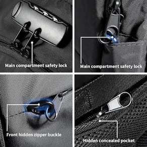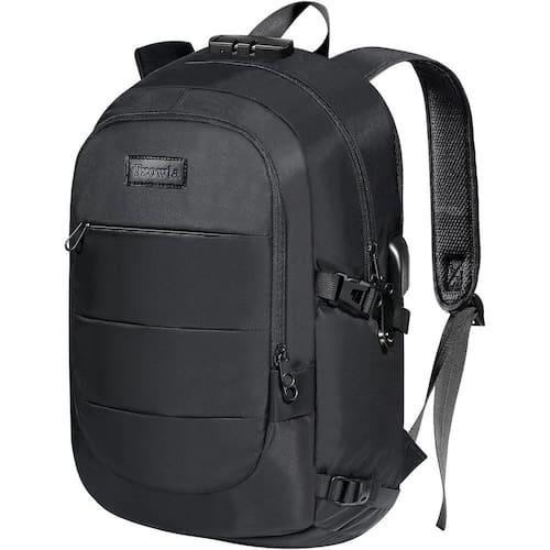 Tzowla Mochila antifurto de 40 litros com porta de carregamento USB para laptop - ?Design antifurto?A mochila Tzowla mantém seus itens seguros com a trava de segurança digital, corda de mola lateral, ganchos de segurança duplos e tecnologia de segurança RFID. Tornando-a a companhia perfeita para viagens ou viagens. - ?Corda de mola lateral?Prenda sua mochila a um objeto seguro, para que não possa ser parada - certifique-se de que ela não vá a qualquer lugar que você não queira. (Corda de mola lateral no bolso direito.) - ?Resistente?Dimensões externas de 20,5 x 13,4 x 6,7 polegadas (52 x 34 x 17 cm) com alças de ombro acolchoadas, o item pesa 1,2 kg, nylon externo 300D à prova d'água e um interior acolchoado protegido proporcionam robustez e longevidade excepcionais. - ?Grande capacidade e organizada?A mochila Tzowla tem um compartimento separado para laptop que comporta qualquer laptop de até 17,3 polegadas. O compartimento frontal é composto por muitos bolsos, gancho para chave para guardar seu item de maneira organizada e mais fácil de encontrar. - ?Porta USB e fone de ouvido? Esta mochila tem porta USB externa com cabo de carregamento integrado que oferece carregamento conveniente do seu celular conectando seu próprio carregador portátil. A porta externa do fone de ouvido também oferece fácil acesso ao uso do fone de ouvido.