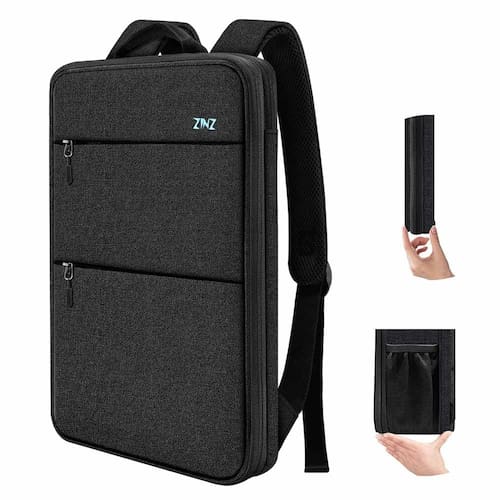 ZINZ Mochila para laptop fina e expansível de 38,5 cm e 40,6 cm, com porta USB, resistente a derramamentos, capa para notebooks para a maioria dos MacBooks de 14 a 16 polegadas, computadores Dell, HP, - Design fino e expansível: estilo fino para viagens leves e deslocamentos, 200% de capacidade de expansão quando há mais pertences e facilmente para alternar entre os dois. Serve bem como capa de laptop profissional de escritório, bolsa de carregamento USB fina para adultos - Proteção perfeita: um compartimento separado com forro de veludo para cuidar bem do laptop, o material externo robusto de poliéster resistente à água é durável, repelente de sujeira e derramamentos - Design de porta USB: com carregador USB embutido no exterior e cabo de carregamento embutido no interior, esta mochila USB oferece a você uma maneira mais conveniente de carregar seu telefone enquanto caminha. Observe que esta mochila não se alimenta, a porta de carregamento USB oferece apenas um acesso fácil para carregar - Alças ocultáveis: o bolso traseiro para alças ocultas que pode ser fácil de alternar entre mochila e manga, para deslizar para outra bolsa, também alguns livros de tamanho A4 no bolso - Serviço Custimer: Se por algum motivo você não estiver satisfeito com o nosso produto, por favor, envie-nos um feedback para nós, oferecemos serviço pós-venda 24 horas