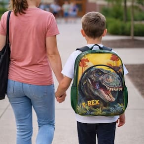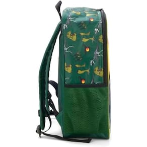 Mochila para Meninos de Costas Dinossauro Trex Resistente Reforçada Bolsos pra Garrafinhas - Raptor Dino - Luxcel - Cor: Verde