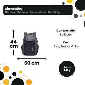 Características do Produto: -05 Ziper -01 Entrada USB Externa -01 Cabo USB -01 Divisória para Notebook -01 Faixa Traseira para Encaixe em Malas de Viagem