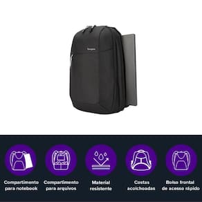A Mochila para Notebook Targus Intellect Essentials tem tudo pra ser sua nova companheira no dia a dia, com um Design discreto e moderno essa mochila para notebook é ideal para você que deseja proteção e organização sem perder praticidade e conforto. Feita em poliéster durável e macio, com um painel traseiro de malha de ar que promove o fluxo de ar e alças acolchoadas. Compartimentos ideais para levar cadernos de anotação, tablets, e-readers.