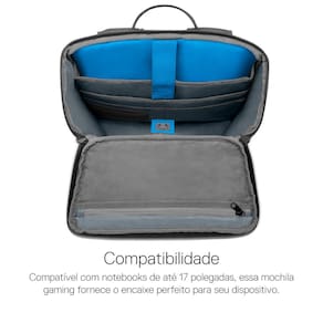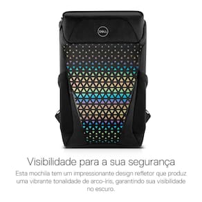 Mantenha seu notebook para jogos em segurança enquanto estiver em movimento com a Mochila Dell Gaming e protegido com a sua capa de chuva acoplada!