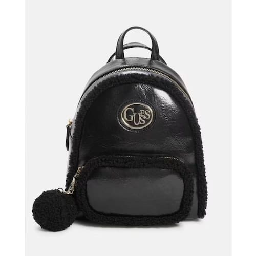 Mochila Pequena Guess Gina Sherpa Preta Modelo Conversível